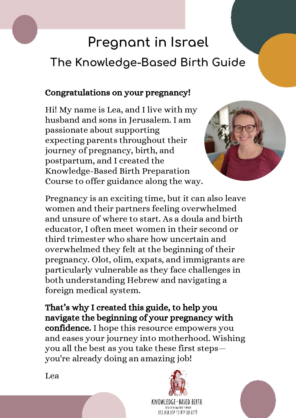 Pregnancy is an exciting time, but it can leave women and their partners feeling overwhelmed. As a doula and birth educator, I often meet Olot, olim, expats, and immigrants who share their initial challenges in understanding Hebrew and navigating a foreign medical system. That's why I created this guide—to help you navigate the early stages of pregnancy with confidence.